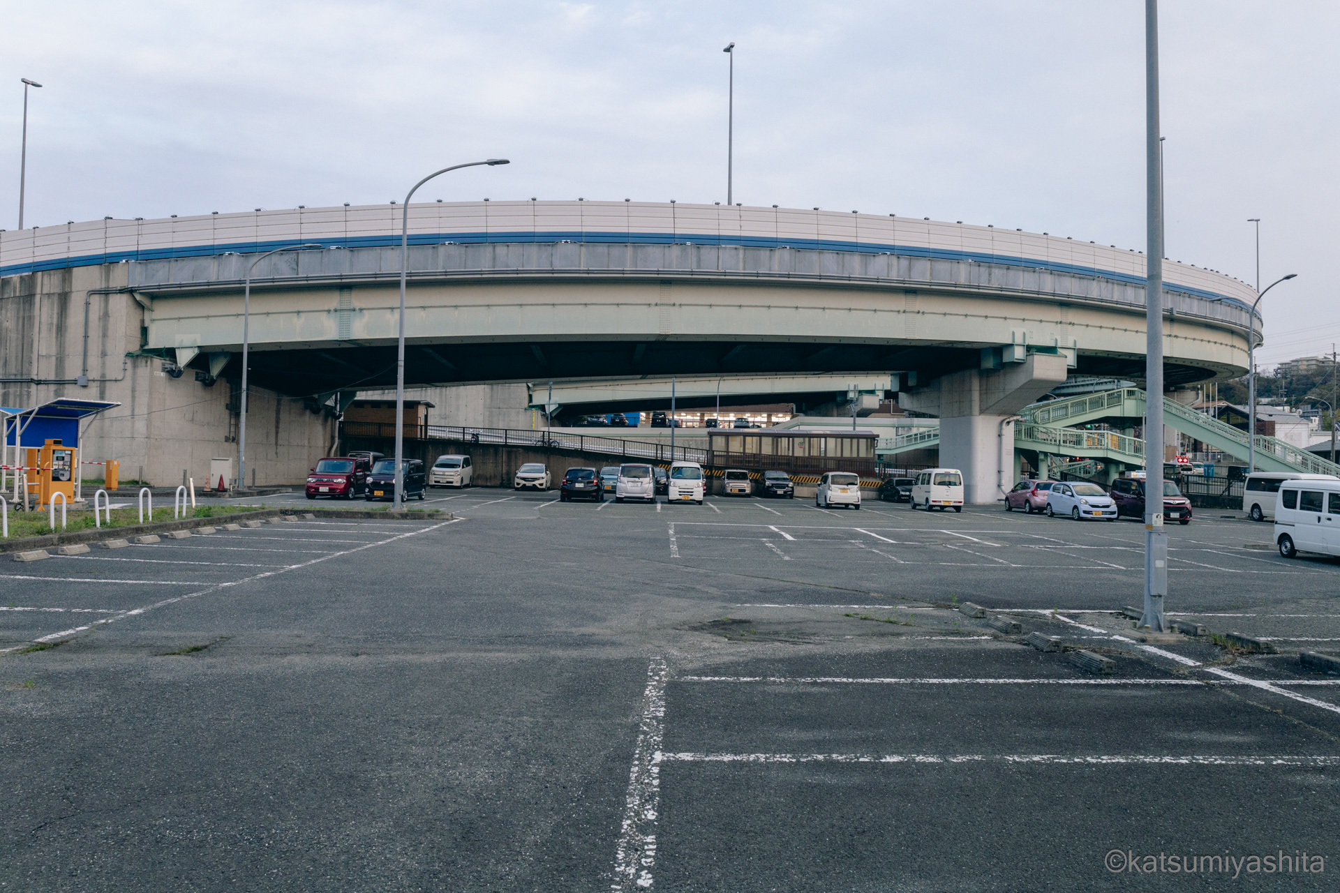 駐車場と高架。よく目にする組み合わせ。高架のある風景。